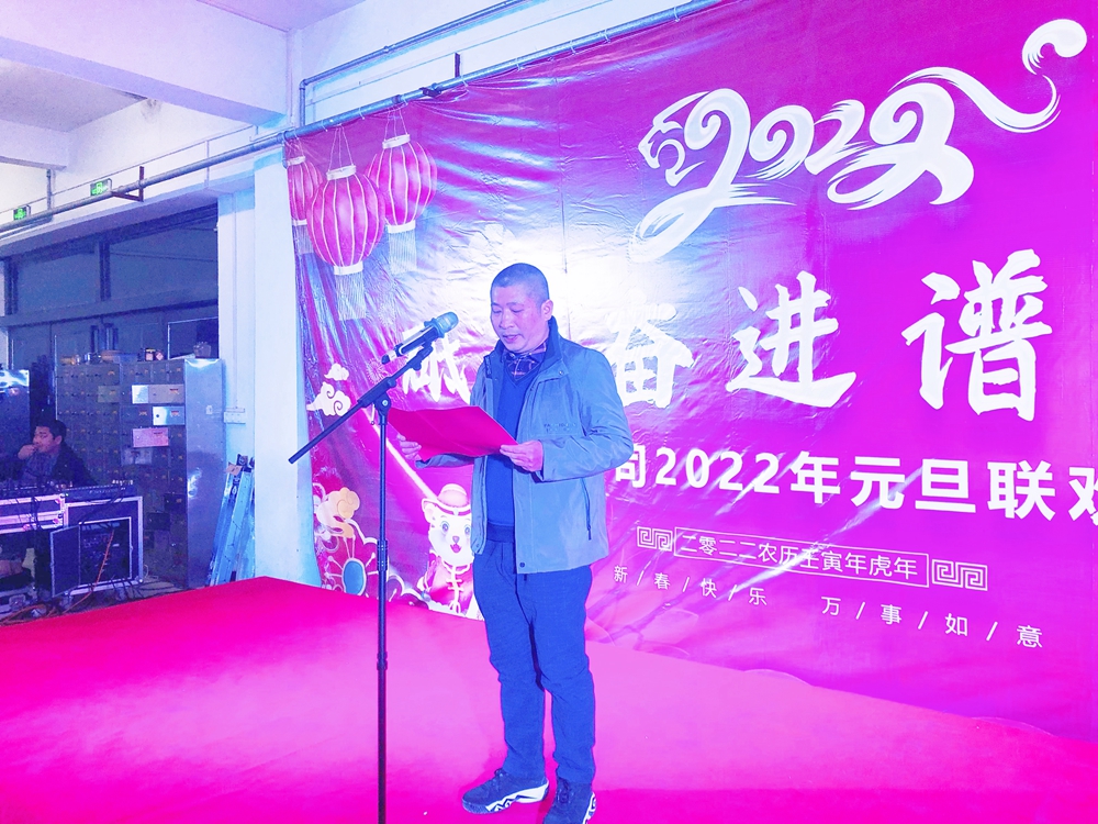 节目开演前,总经理罗耀坤致辞。罗耀坤首先代表恒裕管理层为全体员工送上新春祝福。他指出,2021年恒裕公司完成了两厂工程消缺、投料试生产,骨料厂水洗技改如期完工,钼选厂预抛废技改接近尾声,尾矿库工程完工,采矿相关手续办理进入最后阶段,骨料厂安全环保职业健康“三同时”通过验收。这些成绩凝结着全体同仁的心血和汗水。罗耀坤希望,全体恒裕人在2022年要团结一心,在危机中育先机、于变局中开新局,加大砂石骨料市场开拓力度,进一步稳定产品质量的实验攻关,坚守生产安全和环境保护的底线,乘着产品市场利好的东风,树立信心、迎难而上,坚定不移谋求企业发展。