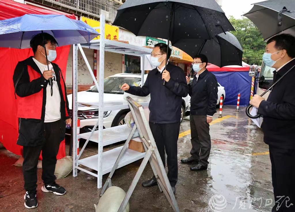3月23日,厦门市委书记崔永辉前往思明区实地检查社区、商场、医院等防疫工作。来到明发商城、富山名士园等小区,了解分区管控措施落实情况;走进中华城、磐基名品中心、瑞景商业广场等,察看商场疫情防控及商家经营状况;在莲花爱心护理院、第一医院思明院区,向大家辛勤付出表示敬意,叮嘱院方严格落实防疫规程,保障群众安全健康;前往丽斯海景酒店、曾厝垵、财富中心,检查隔离酒店、景区、写字楼防控工作。