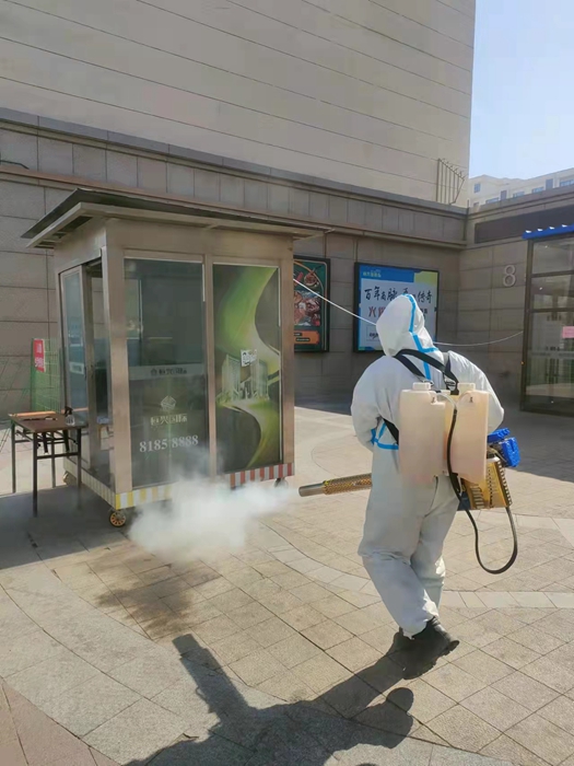 静默的恒兴国际项目内,企业居家办公,商户暂停营业,居民宅家不出,但物业团队依然坚守在各个岗位,在恒兴国际城项目的各个角落,都能看到他们忙碌的身影。