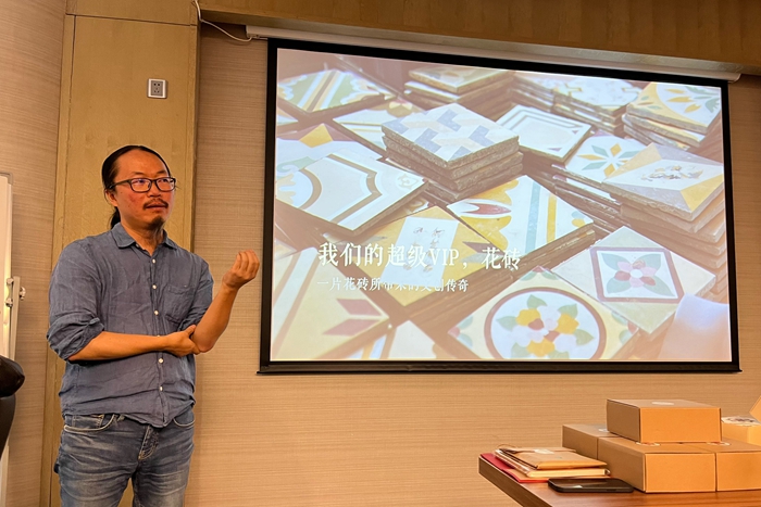 旧物仓是什么概念?它是许多有年代感的旧物件的集结地。起步时期,也囊括了厦门人无法割舍的花砖元素,杨函憬在分享会现场讲述了他挽救十万片花砖的众筹故事。