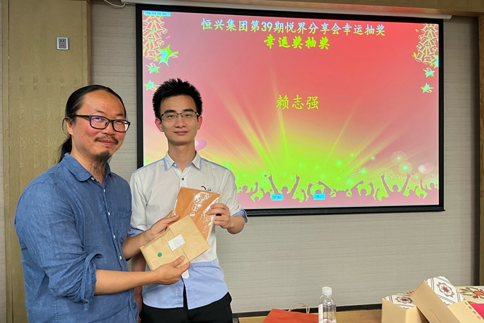 本期悦界分享会的精彩,足见这份被延误的等待是值得的。互动环节,同事们积极提问,提问者均获得旧物仓“旧”字对杯。最后抽奖环节,品牌部赖志强获得杨老师亲自推荐的书籍和花砖包袋,为活动画上圆满的句点!
