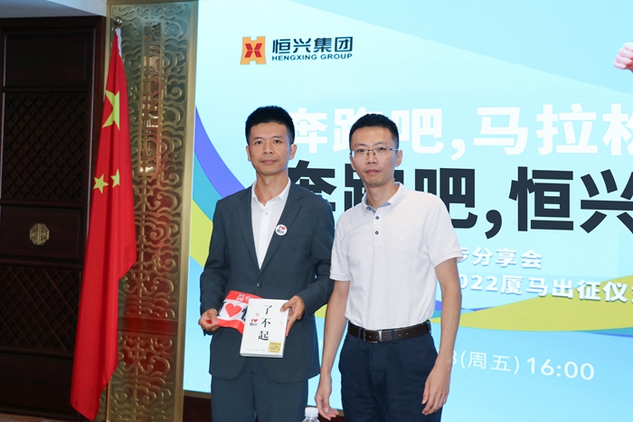 当天,集团公司总裁办主任吴勇慧在发言中祝贺叶仁平再次中签,期待他将恒兴人追逐不凡的身姿,再次带进厦马赛场,并预祝他突破个人历史成绩记录。现场,吴主任为参赛职工发放了赛事报名费补贴,并赠送励志书籍、冯唐的新书《了不起》。